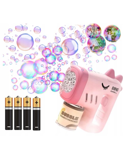 PISTOLET NA BAŃKI DINO MASZYNA DO BANIEK NA BATERIE + PŁYN+ 4x BATERIE Róż
