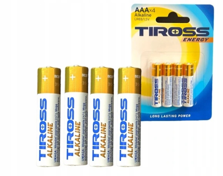 4x Bateria TIROSS Alkaline Power AAA LR03 R3 INDUSTRIAL 1.5V 10lat ważności