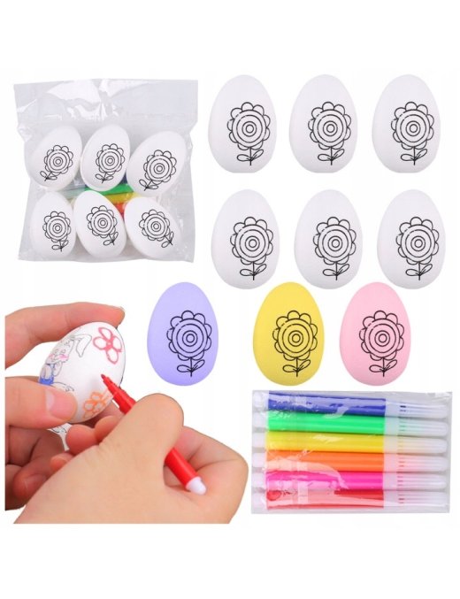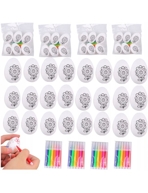 ⭐ JAJKA STYROPIANOWE DO MALOWANIA 24SZTUK Z FLAMASTRAMI ⭐