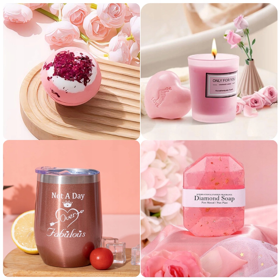 Ten elegancki różowy zestaw upominkowy to prawdziwa uczta dla zmysłów – idealny na urodziny, walentynki, rocznicę, Dzień Kobiet lub po prostu bez okazji!