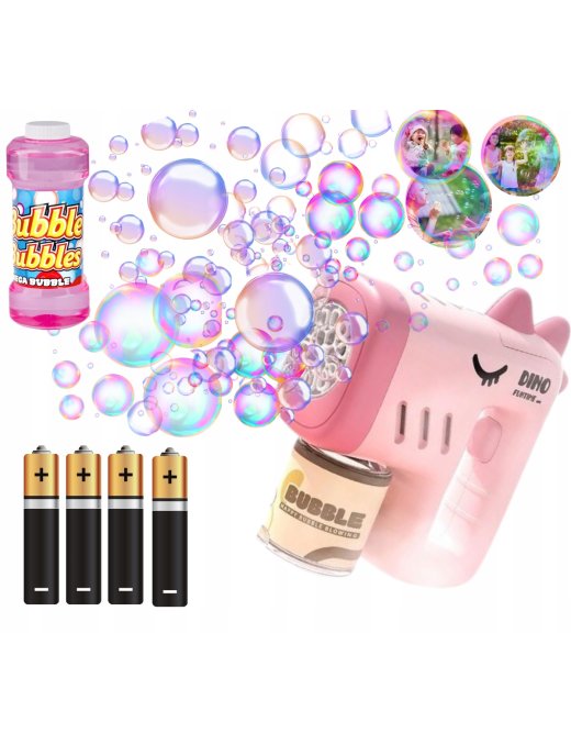 PISTOLET NA BAŃKI DINO MASZYNA DO BANIEK NA BATERIE + PŁYN+ 4x BATERIE Róż