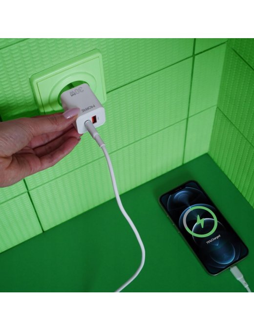 Wyposażona w port USB & USB-C, ładowarka umożliwia jednoczesne ładowanie wielu urządzeń, co czyni ją niezwykle praktycznym rozwiązaniem dla całej rodziny.