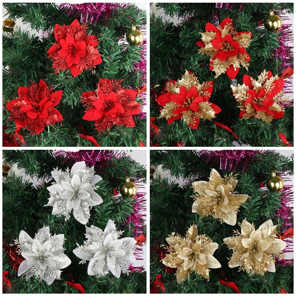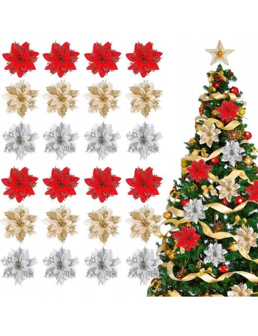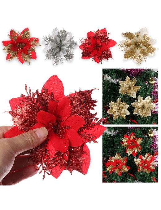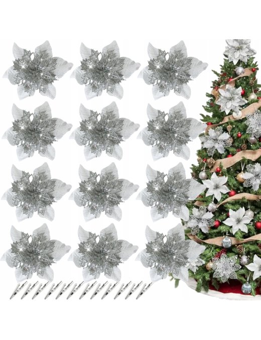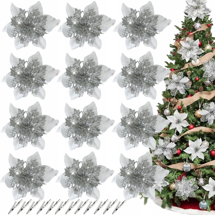 12 X SZTUCZNE KWIATY DEKORACJE BOŻE NARODZENIE NA CHOINKĘ GWIAZDA PREZENTY