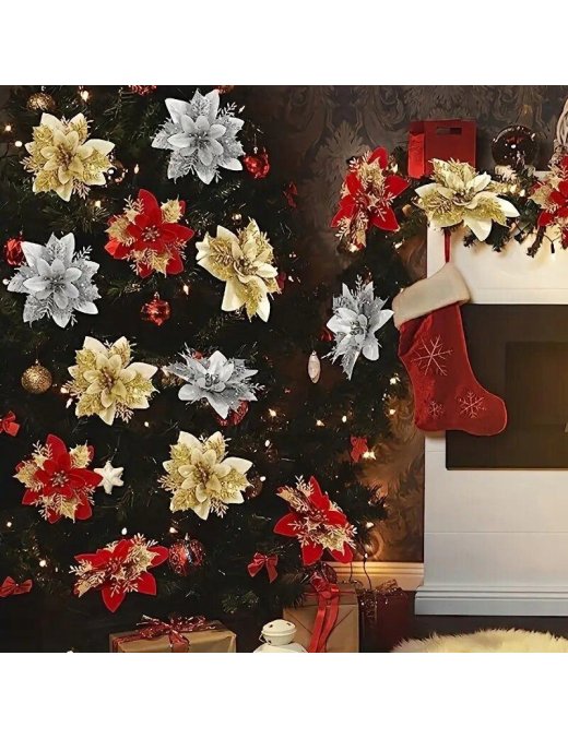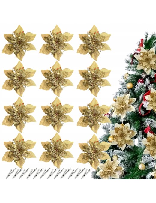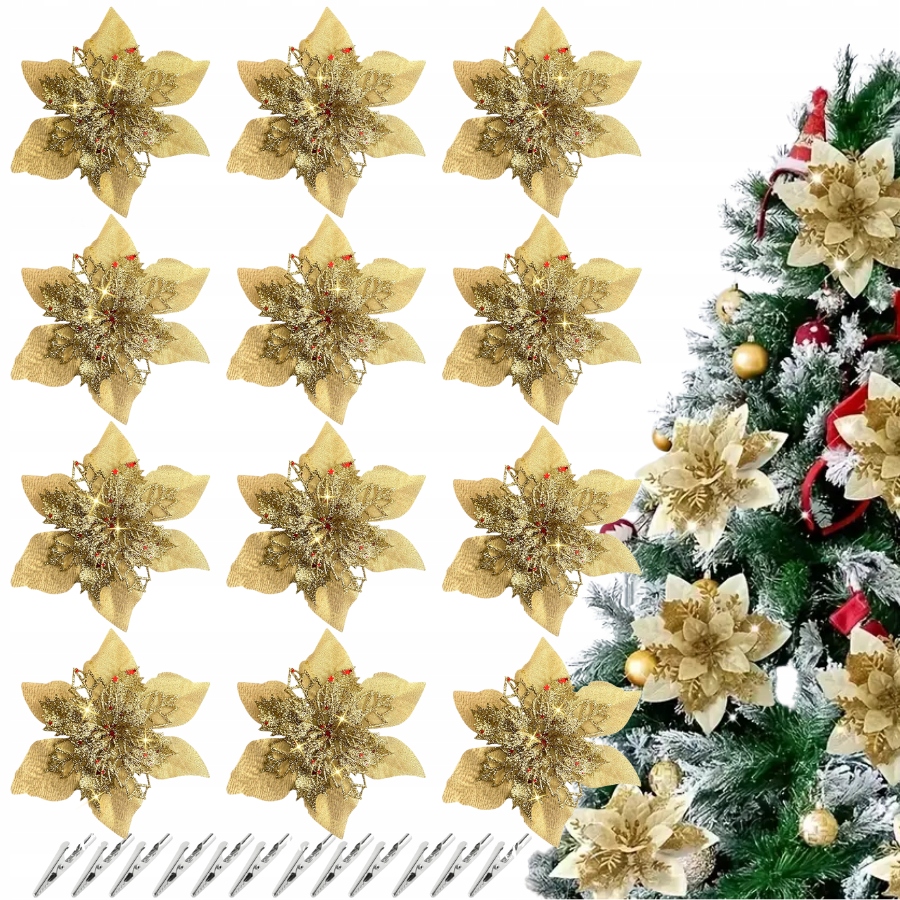 12X SZTUCZNE KWIATY DEKORACJE BOŻE NARODZENIE NA CHOINKĘ GWIAZDA PREZENTY