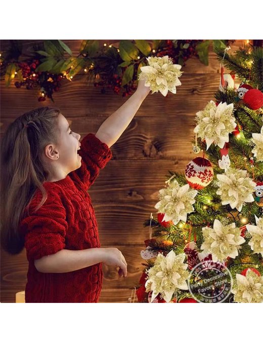 Zestaw zawiera 12 błyszczące sztuczne kwiaty pierwszego gatunku w kolorze czerwone i 12 uniwersalne gałązki kwiatowe o długości 14cm, które zaspokoją Twoje potrzeby związane z dekoracjami bożonarodzeniowymi.