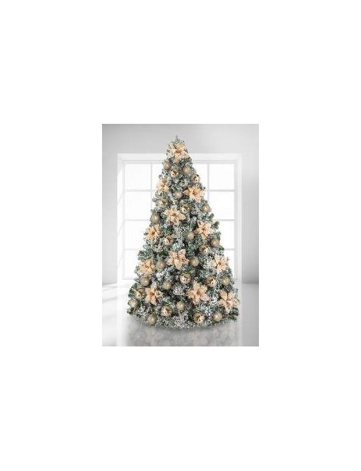 Rozmieść większe kwiaty spiralnie od dołu do góry, łącząc je z bombkami w odcieniach bieli i złota – uzyskasz spójny, hotelowy look. Do girland użyj co 20–30 cm jednego kwiatu.