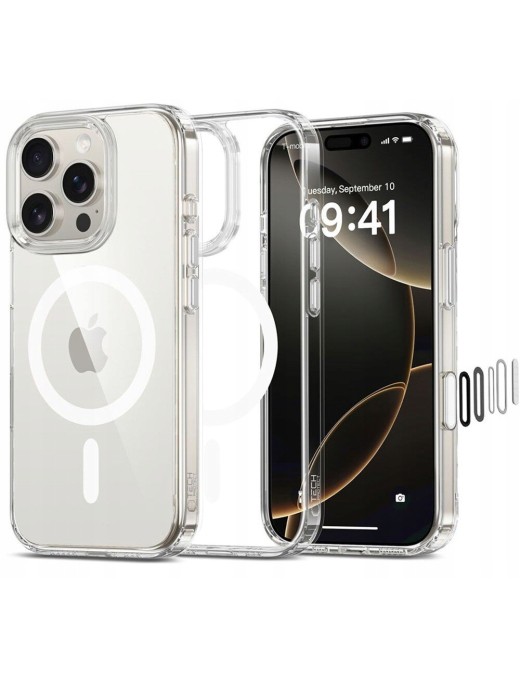 Etui Do iPhone 16 Pro +2szt Szkło 5D9H WZMACNIANE 360° do MAGSAFE bezbarwny