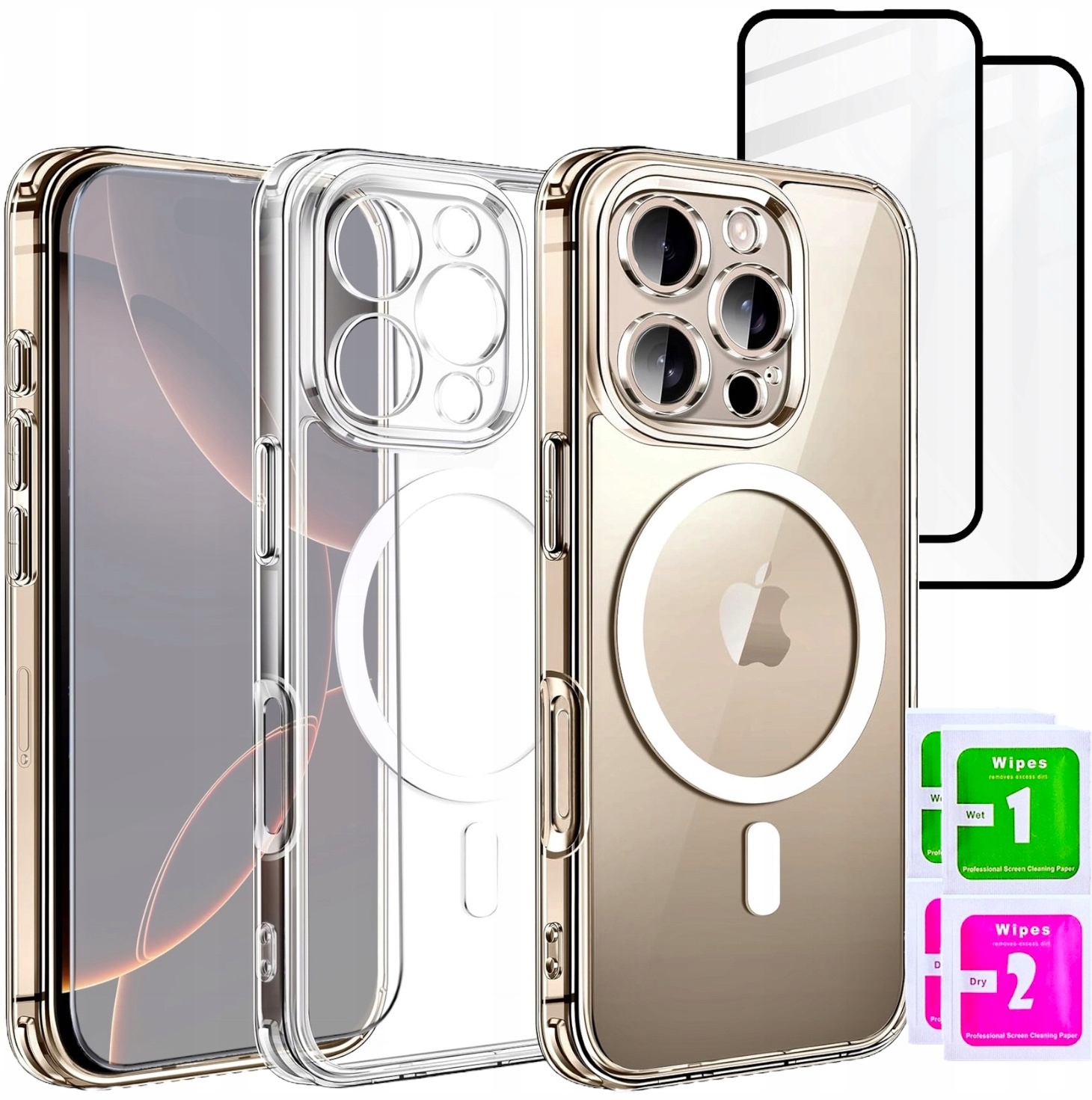 Etui Do iPhone 16 Pro Max + 2szt Szkło 5D 9H WZMACNIANE 360° do MAGSAFE