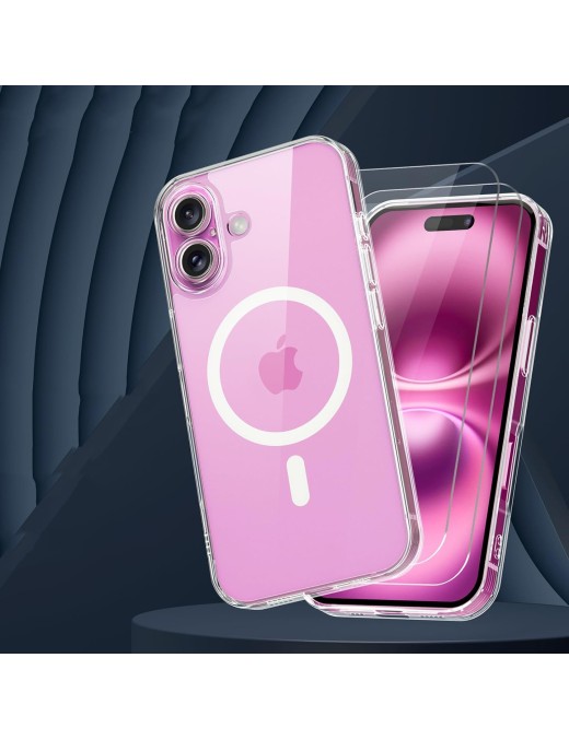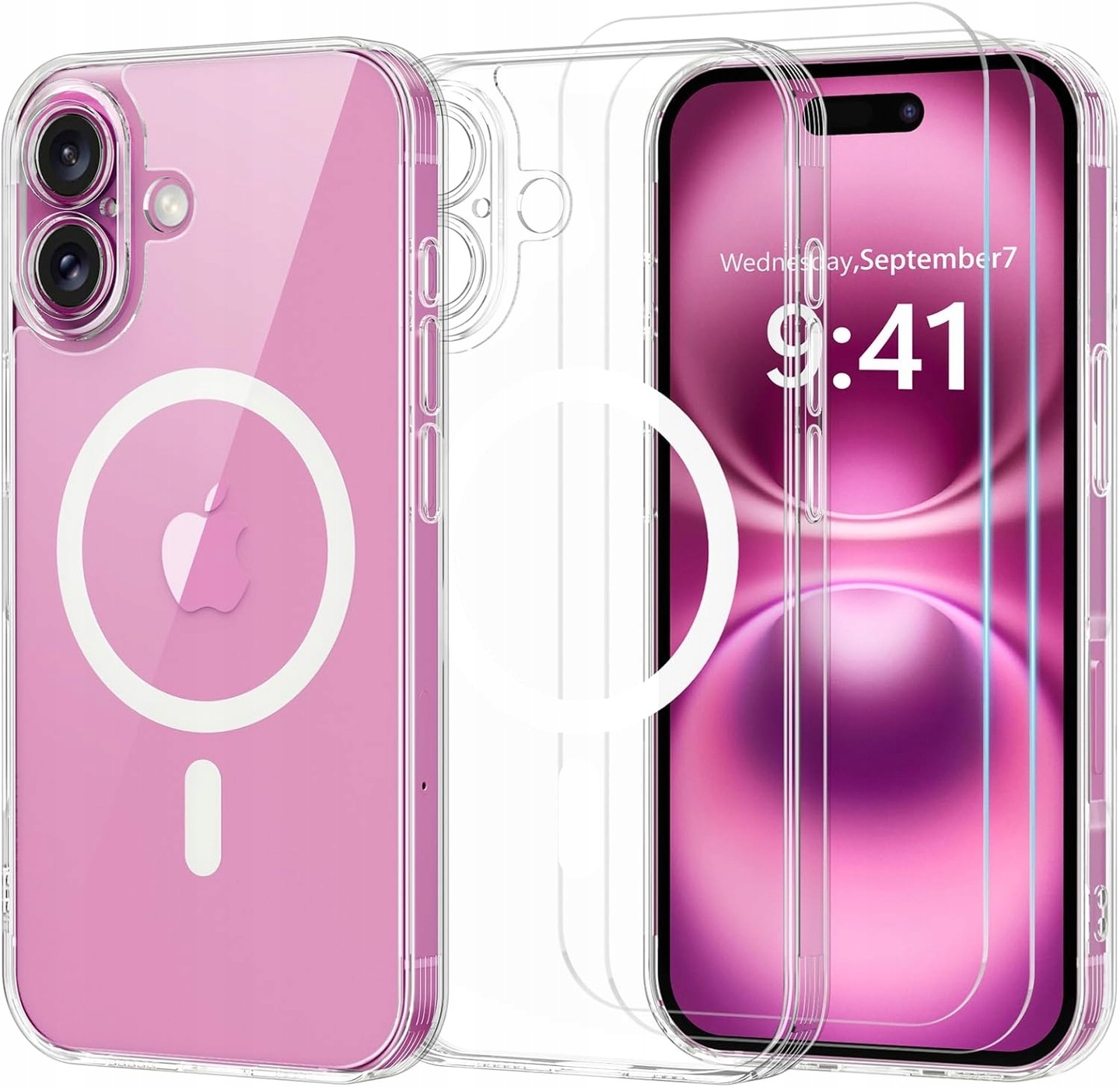 Etui Do iPhone 16 + 2szt Szkło 9D 9H WZMACNIANE 360° do MAGSAFE CLEAR CASE