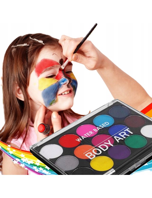 FARBY DO TWARZY ZMYWALNE FARBKI DO MALOWANIA CIAŁA ZESTAW 15 KOLORÓW DZIEC