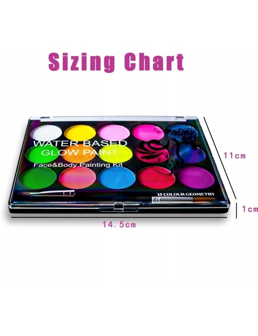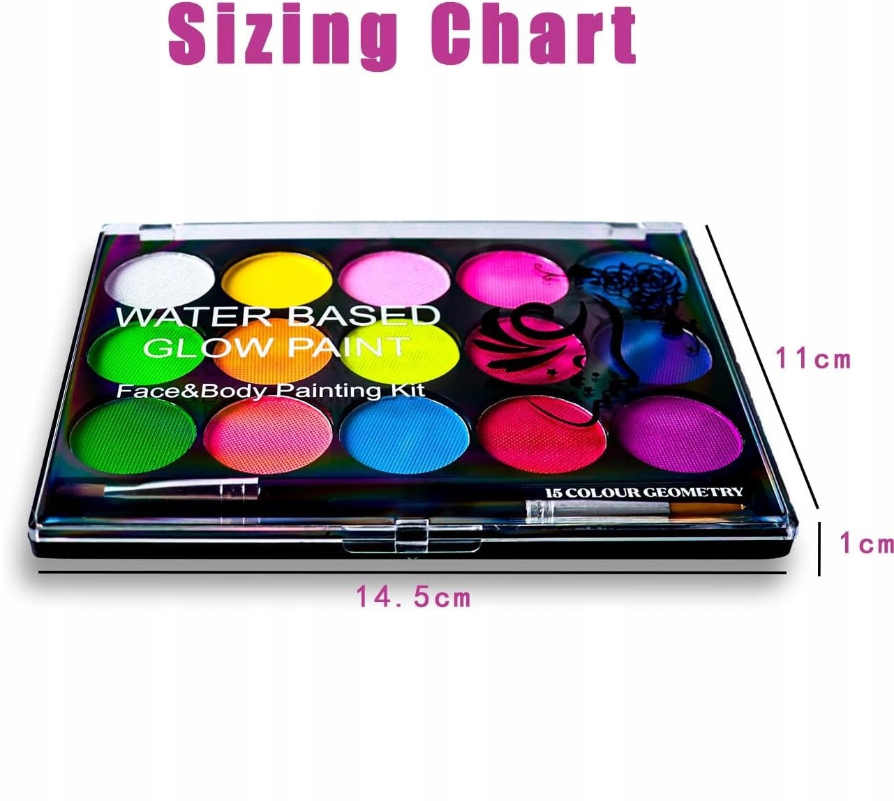 • Paleta 15 kolorowych farb do twarzy i ciała