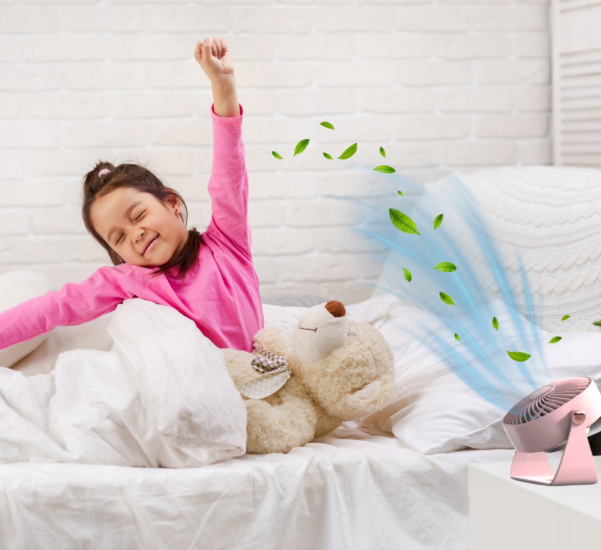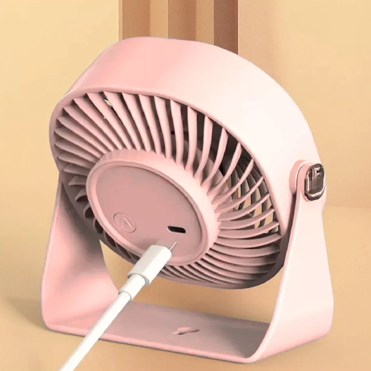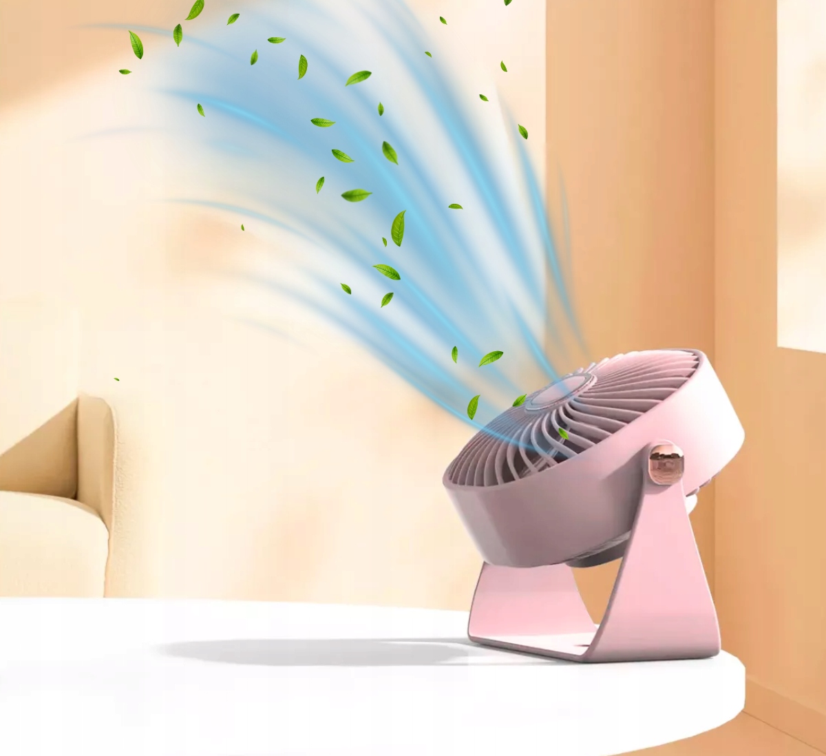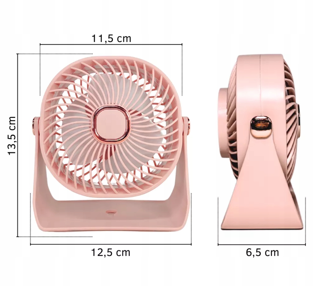 Mini wentylator biurkowy mały WIATRAK stołowy BEZPRZEWODOWY DO DOMU RÓŻOWY