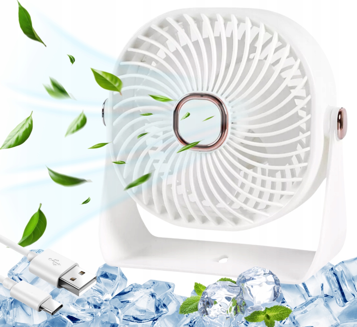 Mini wentylator na biurko mały WIATRAK stołowy BEZPRZEWODOWY do domu BIAŁY