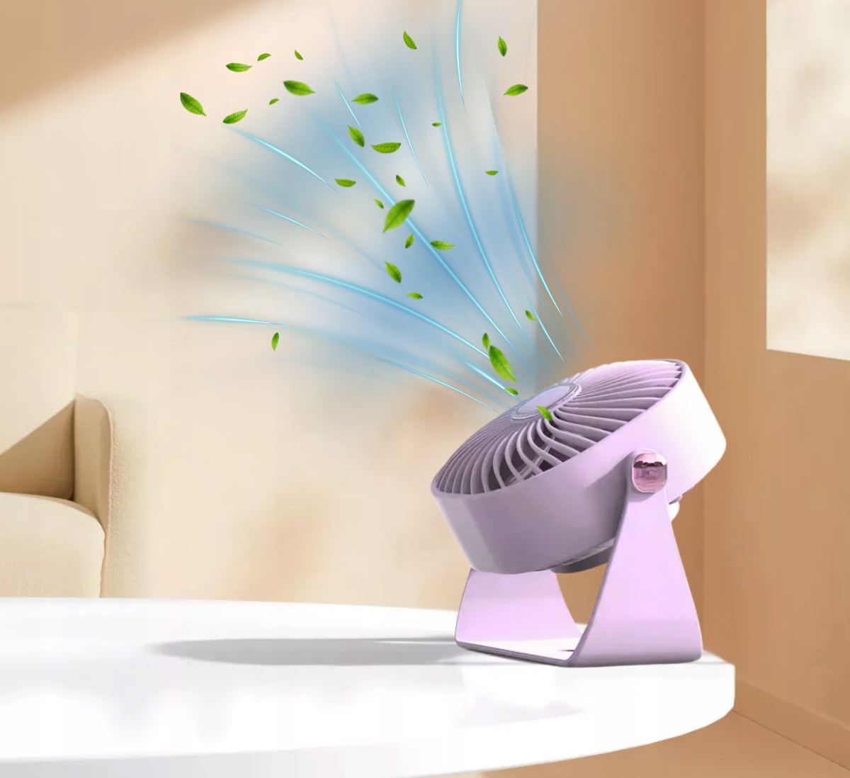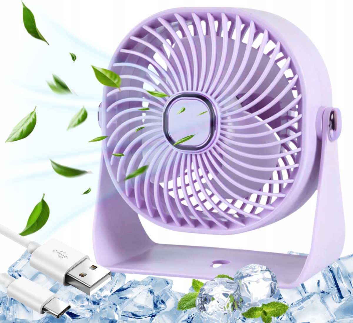 Mini wentylator na biurko mały WIATRAK stołowy BEZPRZEWODOWY FIOLETOWY