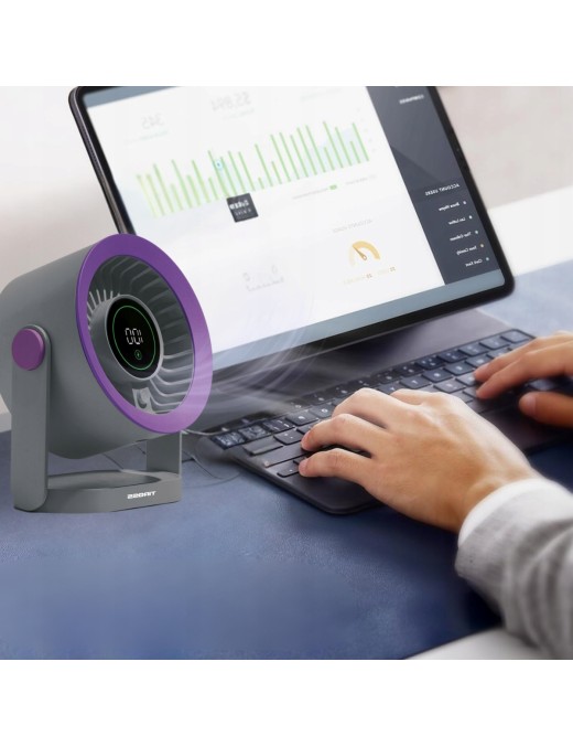 WIATRAK biurkowy USB-C mini wentylator cichy mocny LCD WIATRACZEK fioletowy