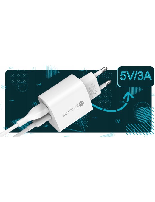 ZESTAW |SZYBKA ŁADOWARKA SIECIOWA USB TYPE-C + KABEL 1,5M LIGHTNING|PD20W