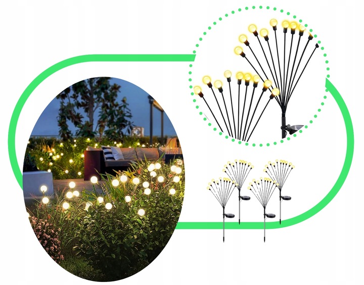 LAMPA SOLARNA WBIJANA CZARNY 10LED BIAŁY CIEPŁY CZUJNIK KULECZKI DRZEWKO