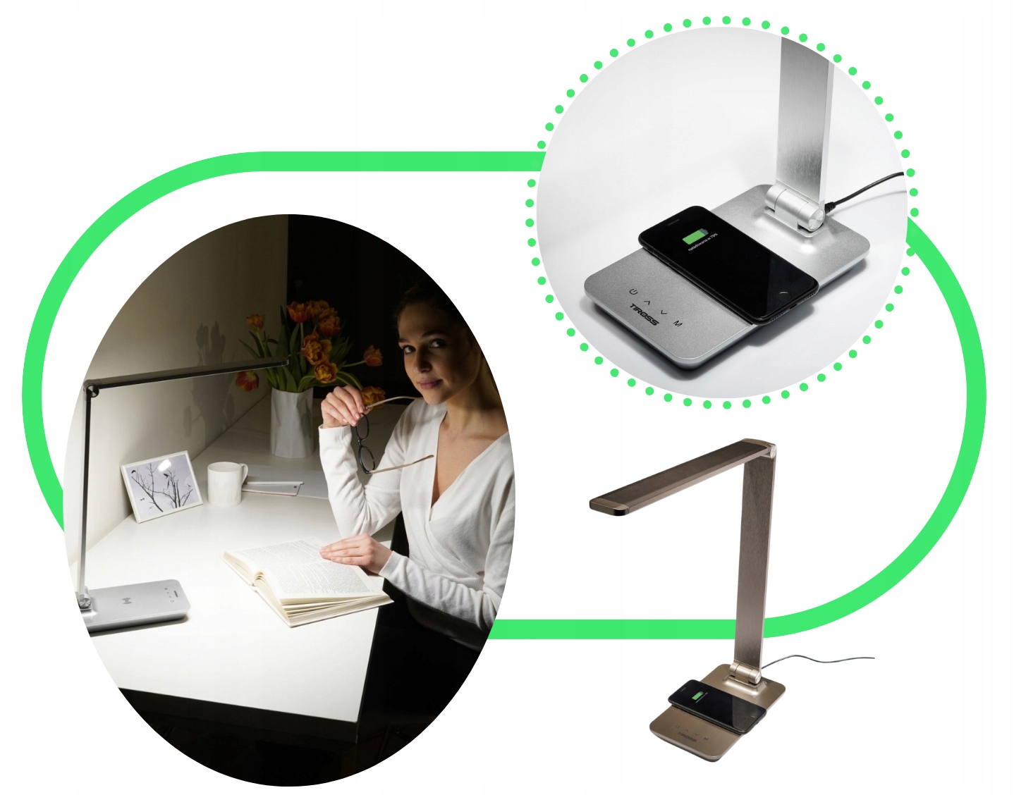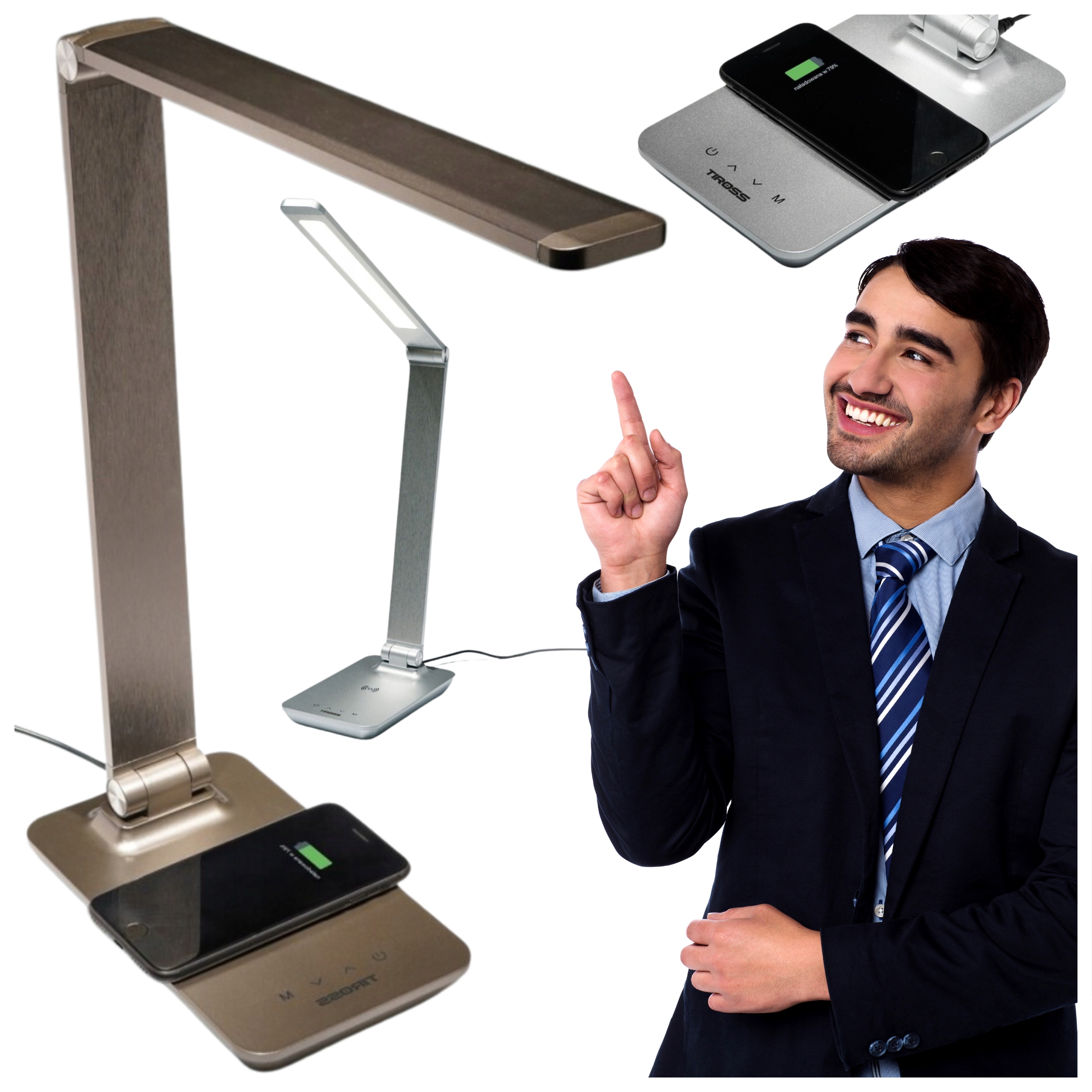 LAMPA BIURKOWA Z BEZPRZEWODOWĄ ŁADOWARKĄ 10W 580LM TS1815