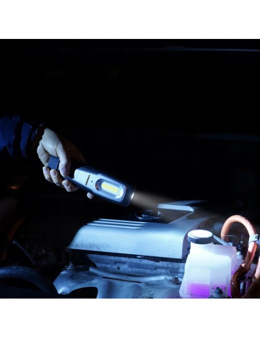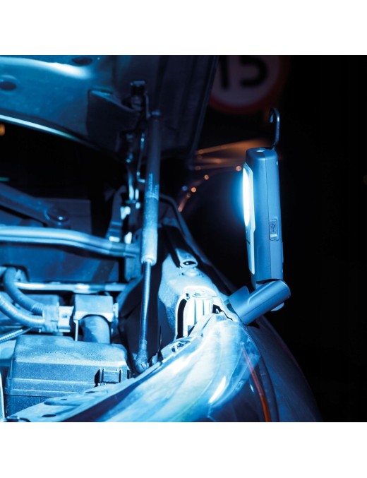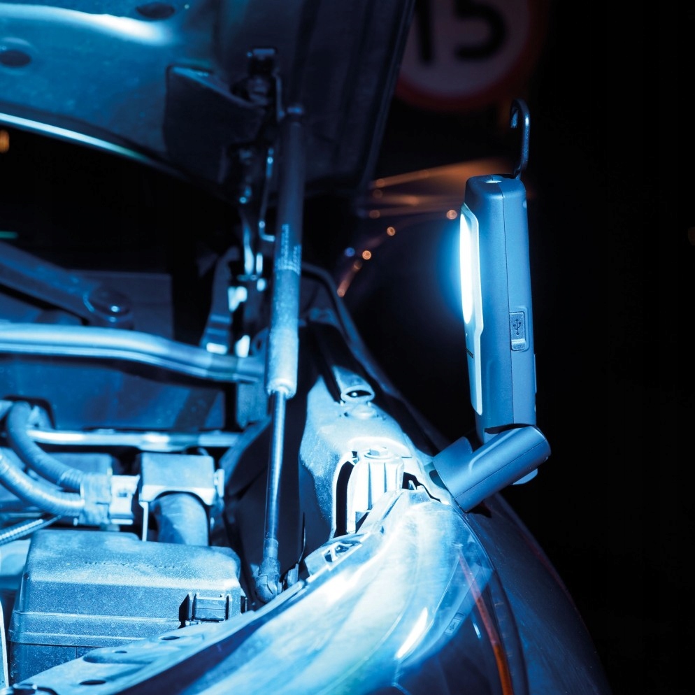 Główna żarówka COB LED emitująca światło o mocy 600 lumenów dostarcza jasny snop dziennego światła 6500K, tworząc komfortowe warunki do wielogodzinnego majsterkowania. Dzięki dodatkowej żarówce lampa może również pełnić funkcję ręcznej latarki wykorzystywanej w trudnodostępnych miejscach. Wyposażona w silny magnez w obracającej się podstawie, umożliwia precyzyjne dostosowanie kąta padania światła, skutecznie oświetlając wszystkie elementy. A dzięki trzem wydajnym trybom pracy, urządzenie może emitować światło nawet przez 10 godzin bez przerwy, po czym zostać naładowane do pełna w zaledwie 4 godzin.