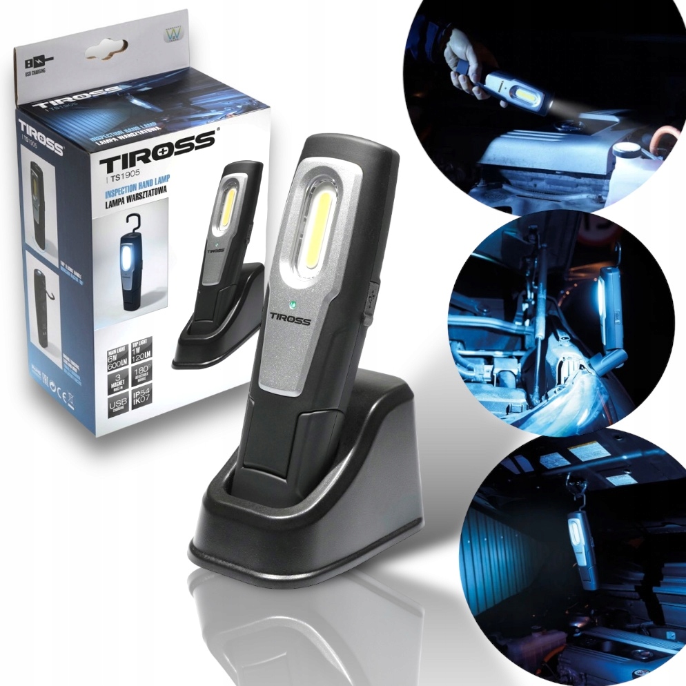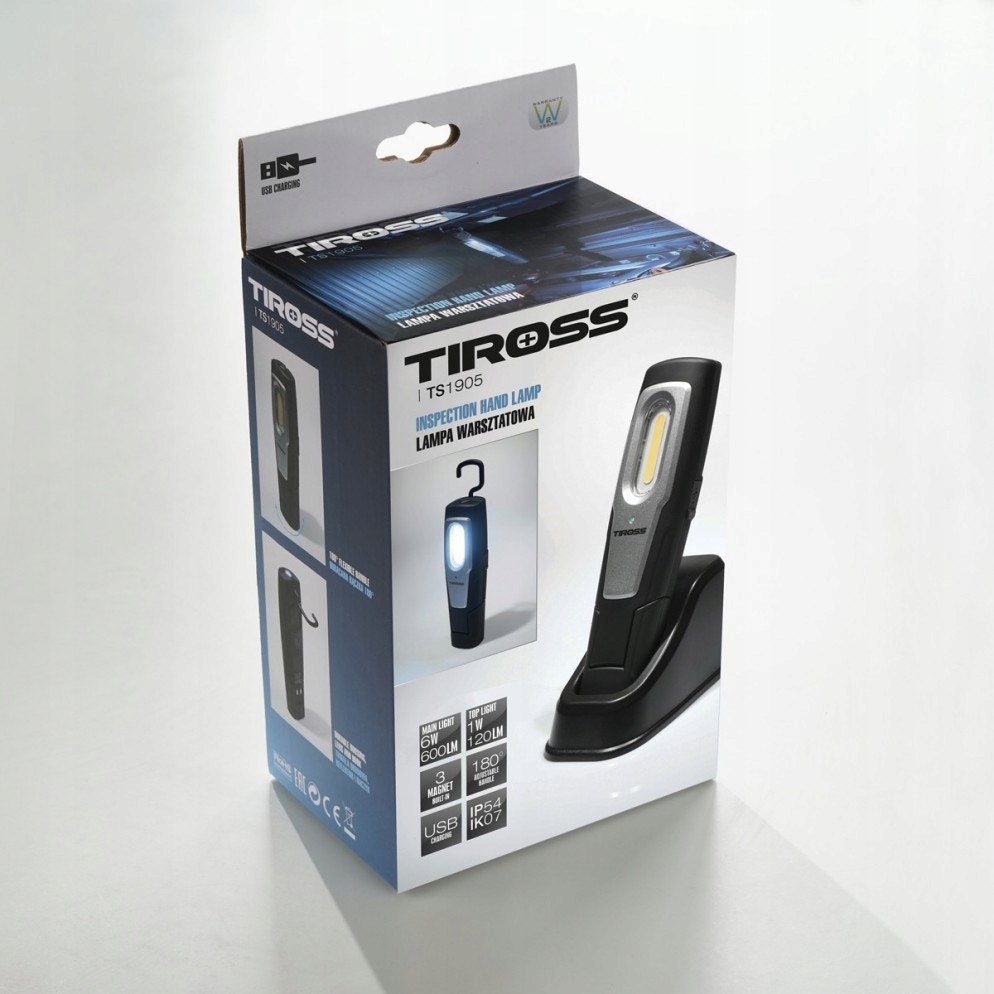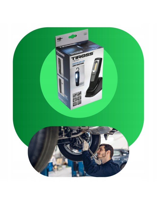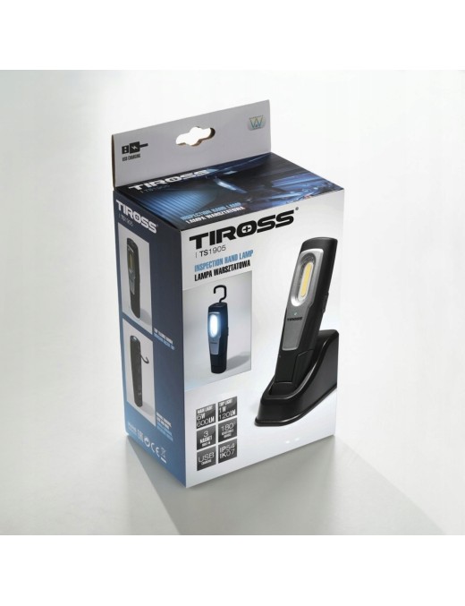 Poręczna lampa warsztatowa marki TIROSS TS-1905 wyposażona w dwa wydajne źródła światła gwarantuje komfortowe użytkowanie w każdych warunkach.