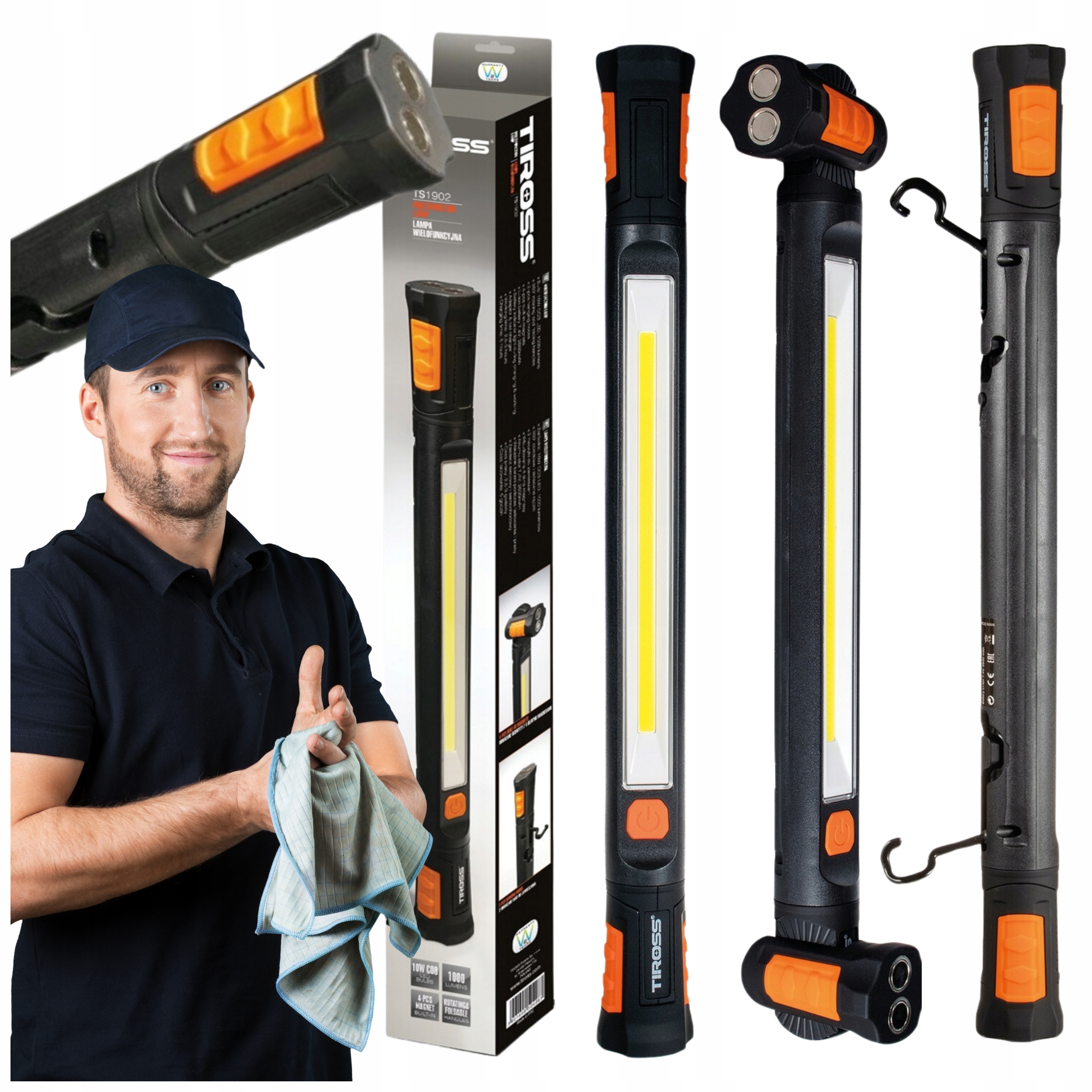 Latarka LED COB 12W 1200lm hak magnes akumulator 2600mAh przenośna TS2273