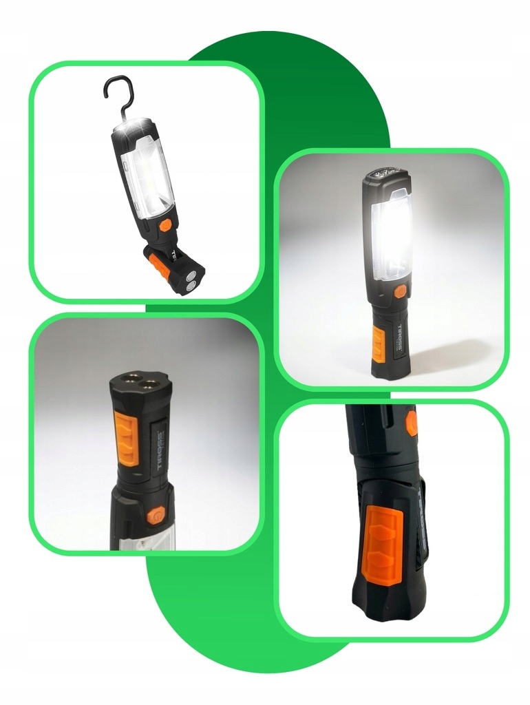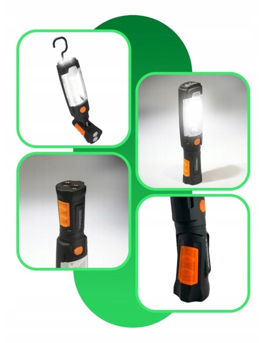 Poręczna lampa warsztatowa z mocną żarówką 3W COB LED emituje zimne światło doskonale rozświetlające zakamarki pod maską samochodu.