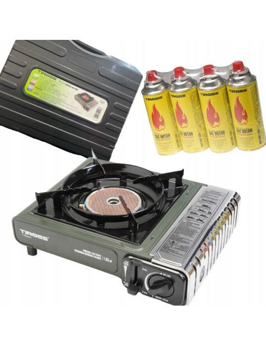 TIROSS TS269 to praktyczna kuchenka gazowa turystyczna / campingowa / biwakowa, idealna na: caravaning, namiot, ryby, działkę, wyjazdy rodzinne oraz jako awaryjna kuchenka gazowa.