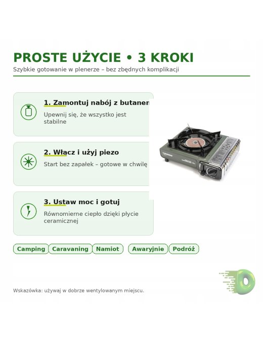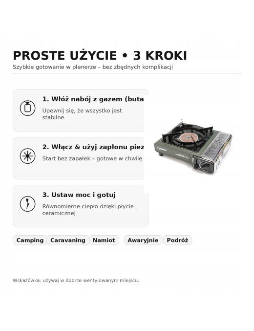 To świetna kuchenka turystyczna do namiotu, kuchenka campingowa do kampera, kuchenka na biwak, kuchenka gazowa walizkowa – do gotowania w plenerze i w podróży.