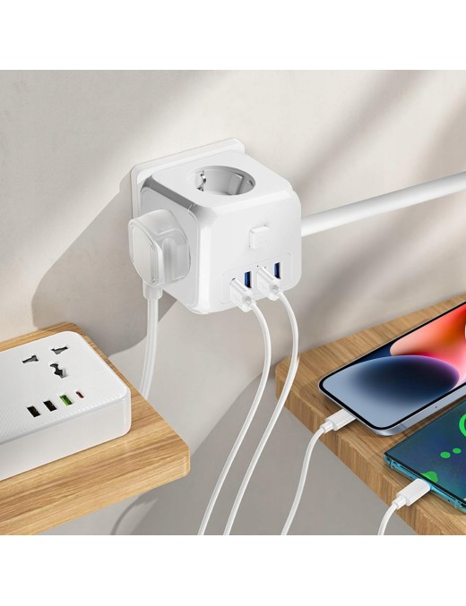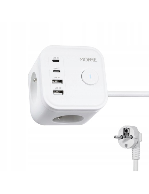 Przedłużacz 7w1 3xAC 2xUSB 2xUSB-C 20W ON/OFF szybka ładowarka listwa 1.5m