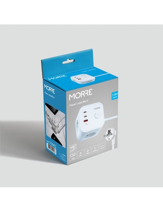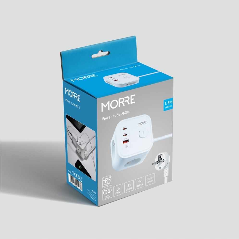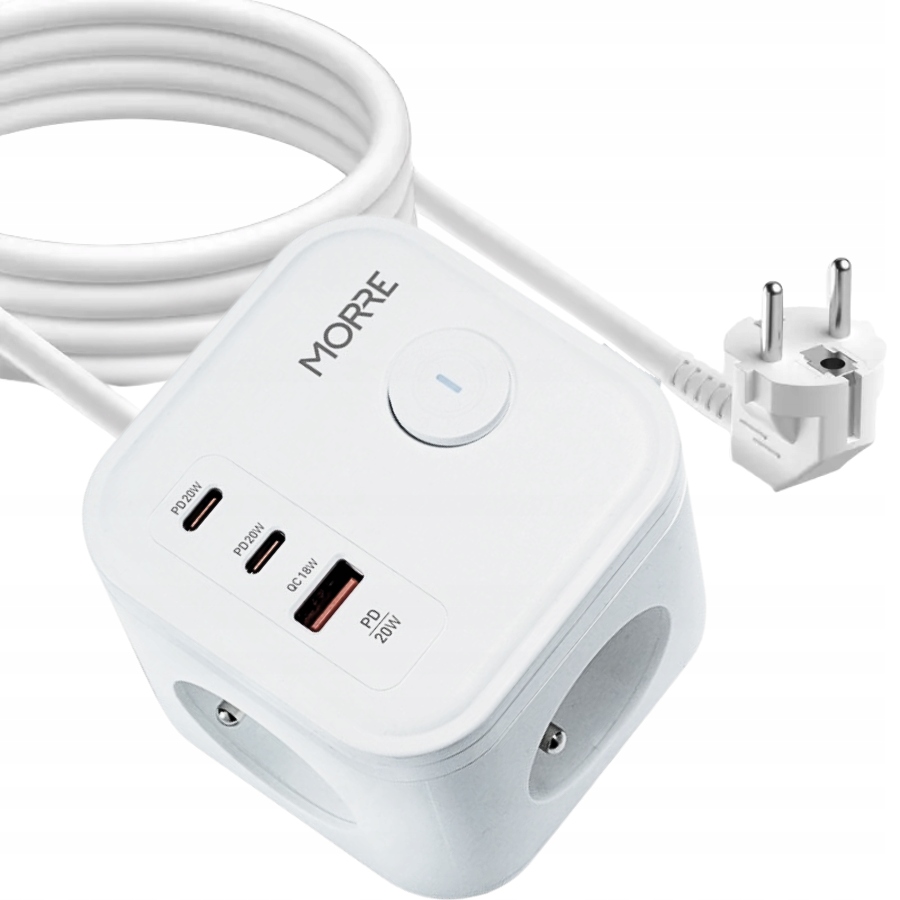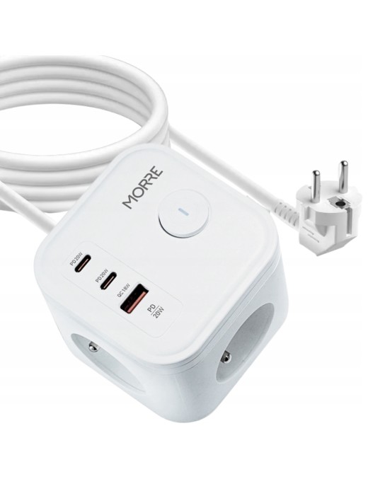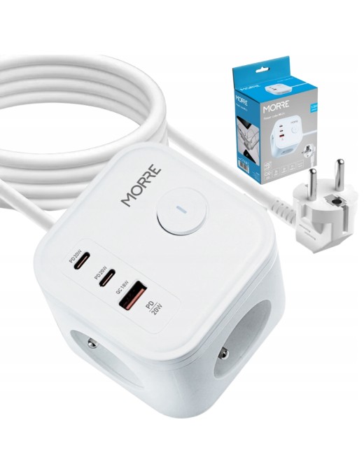 Przedłużacz z ładowarką USB PD QC 3xAC 2xUSB-C 1xUSB ON/OFF kabel 1.5 metra