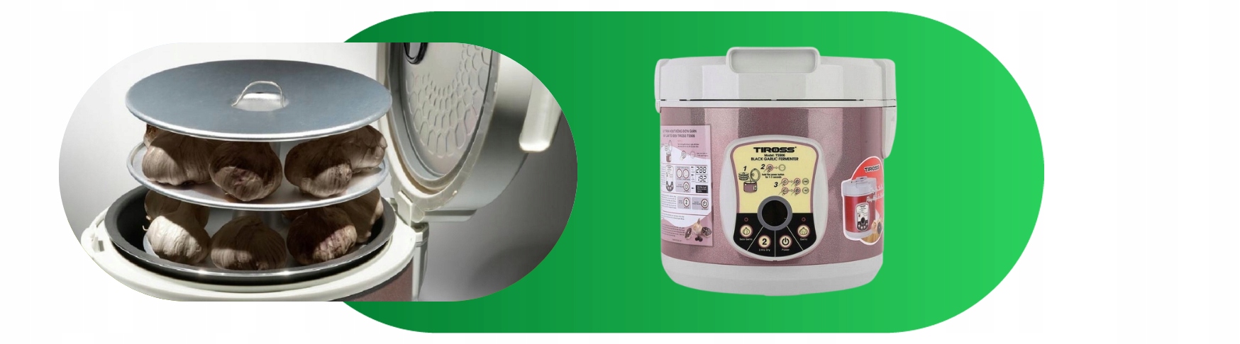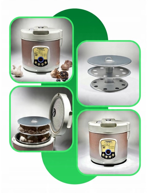 ➡️ Dzięki urządzeniu Tiross czarny czosnek można wytwarzać w domu regularnie (ponad 30-40 cykli w roku) uzyskując z każdego cyklu ok. 1-1,2 kg czarnego czosnku (18-22 główki czosnku).