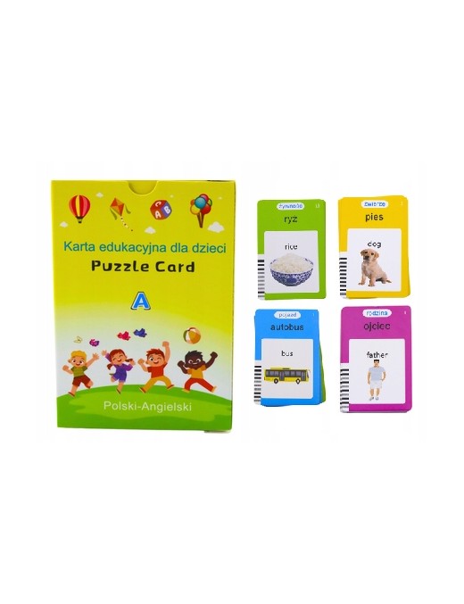 ✅112 szt. dwustronnych kolorowych kart = 448 słów języku angielskim oraz polskim