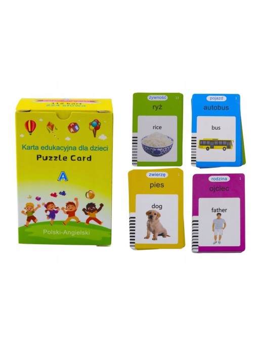 ✅112 szt. dwustronnych kolorowych kart = 448 słów języku angielskim oraz polskim