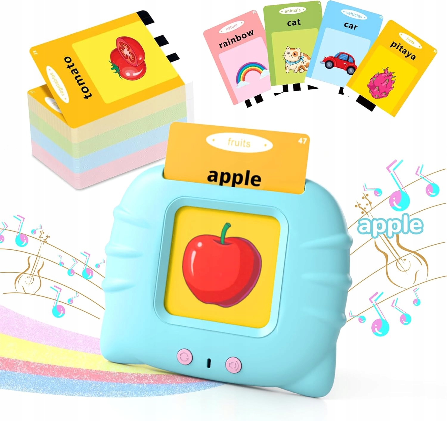 Czytnik kart to interaktywne, elektroniczne urządzenie do nauki języka angielskiego. To doskonały sposób aby zachęcić dzieci do nauki języka angielskiego. Czytnik integruje naukę z zabawą – jest to bardzo skuteczna metoda nauki, zwłaszcza u najmłodszych dzieci. Poprzez naukę przez zabawę dziecko rozwija pamięć, koncentrację, kreatywność oraz wspiera logiczne myślenie.