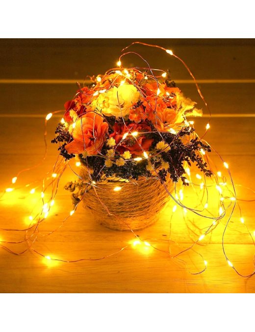 ✅⭐ Długi, 5 metrowy drucik wyposażony jest w ok. 50 diod LED. Diody świecą ciepłym, białym kolorem.