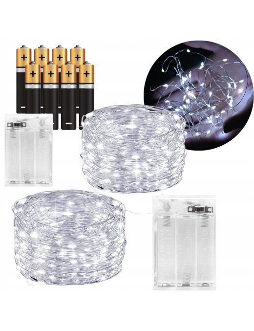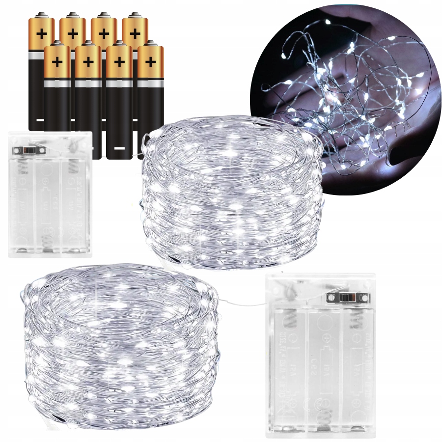 2szt X LAMPKI LED DRUCIK 10M 100LED NA BATERIE MIKRO ŚWIATEŁKA ZIMNY BIAŁY