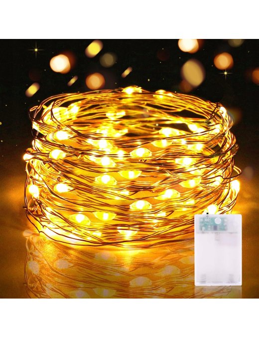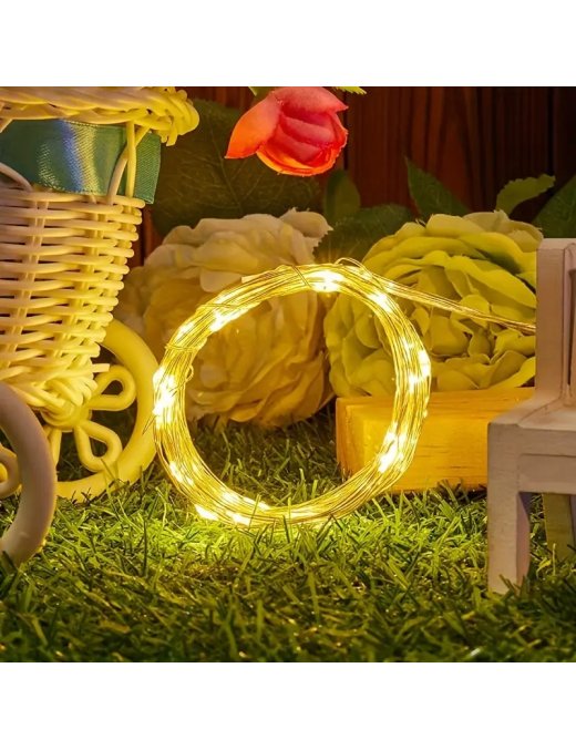 ✅⭐ Długi, 10 metrowy drucik wyposażony jest w ok. 100 diod LED. Diody świecą ciepłym, białym kolorem.