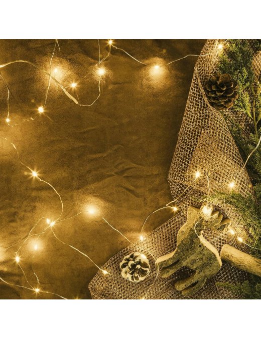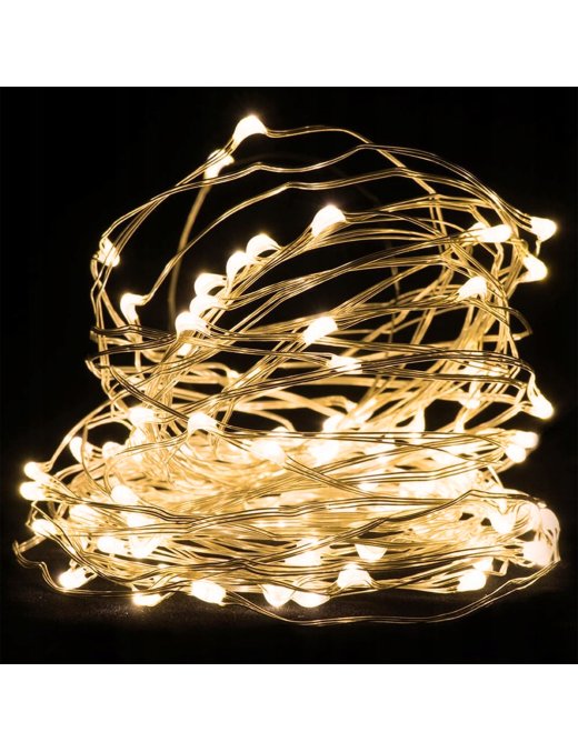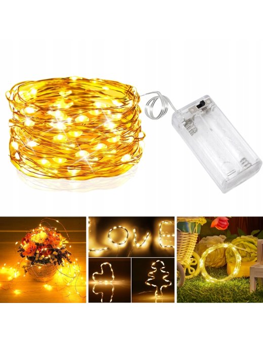 ✅⭐ Długi, 5 metrowy drucik wyposażony jest w ok. 50 diod LED. Diody świecą ciepłym, białym kolorem.