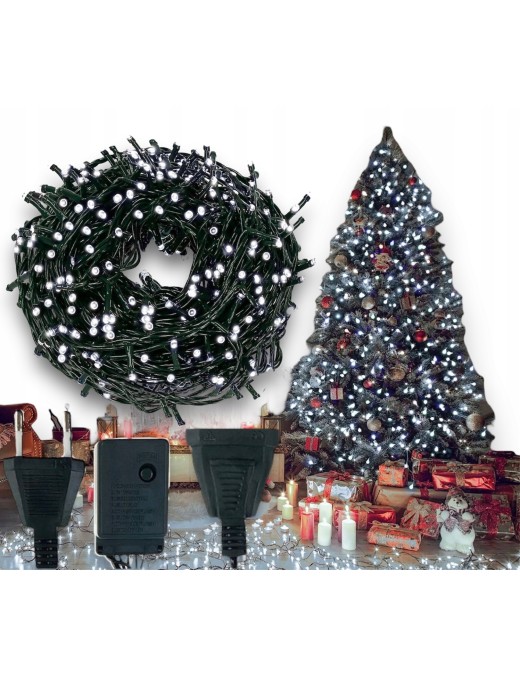 LAMPKI ŚWIATEŁKA NA CHOINKĘ WEWNĘTRZNE 21 m 201 - 300LED ZIMNE BIAŁE MOCNE