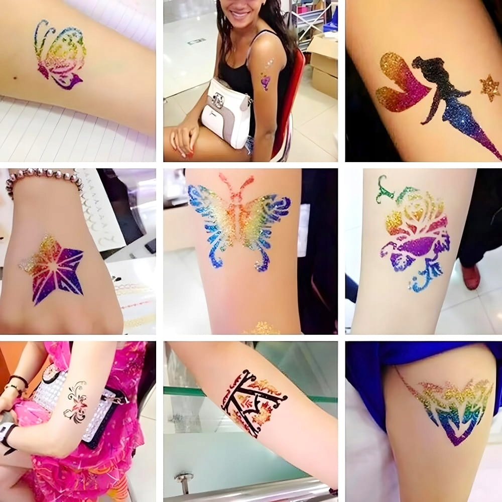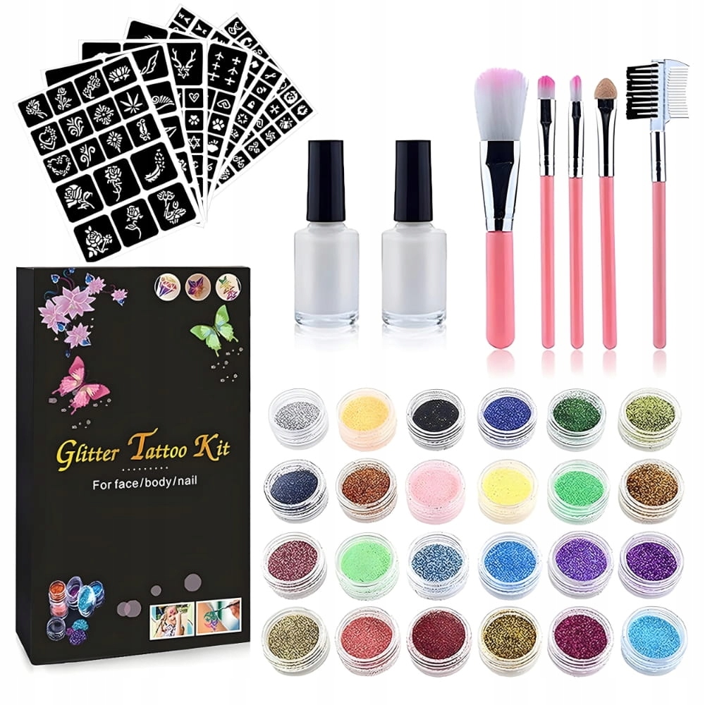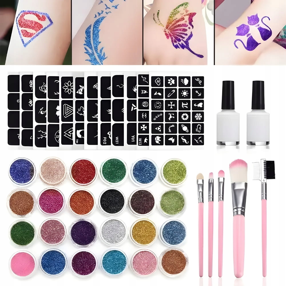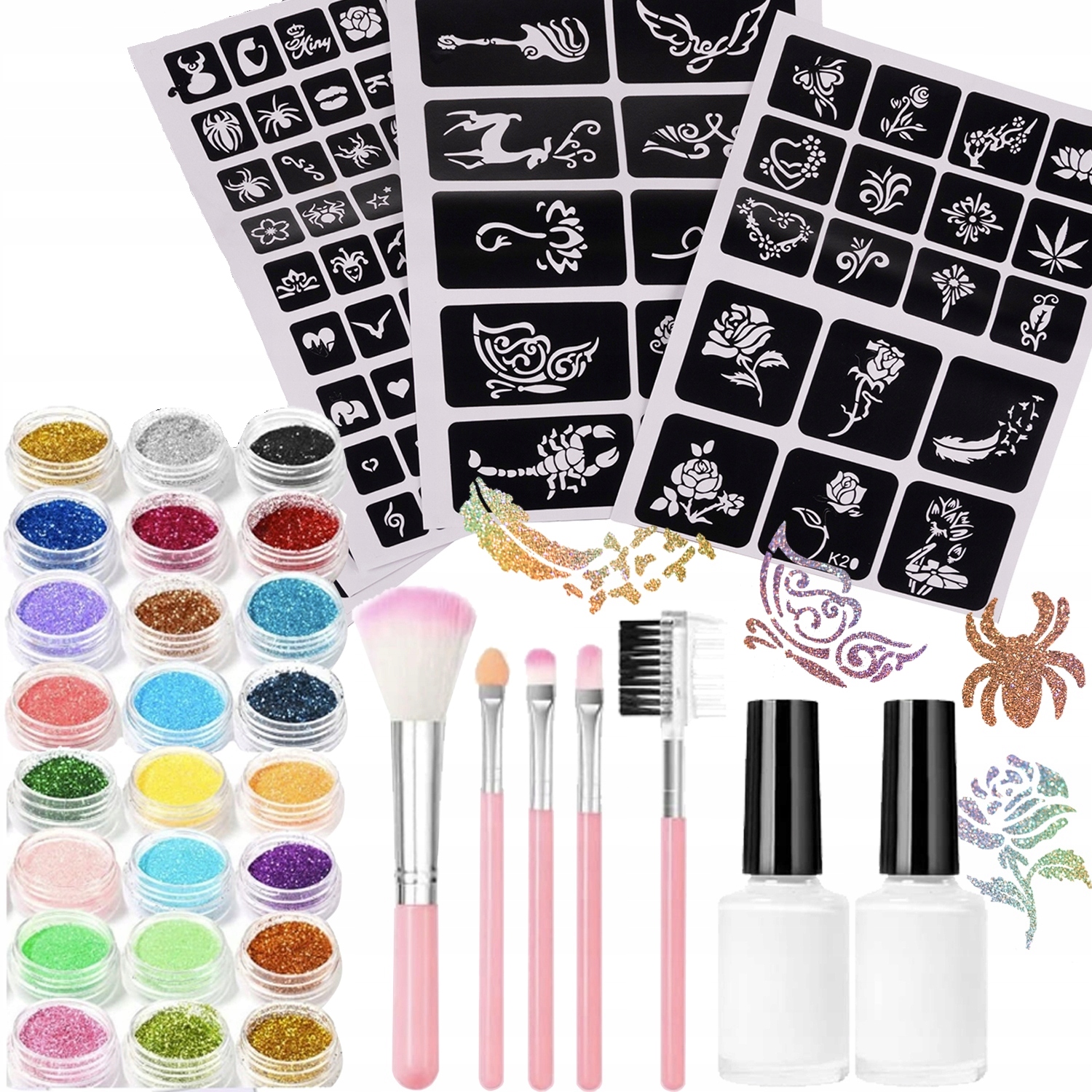 DUŻY ZESTAW DO ROBIENIA TATUAŻY SZABLONY TATUAŻE BROKAT ZMYWALNE PREZENT XL