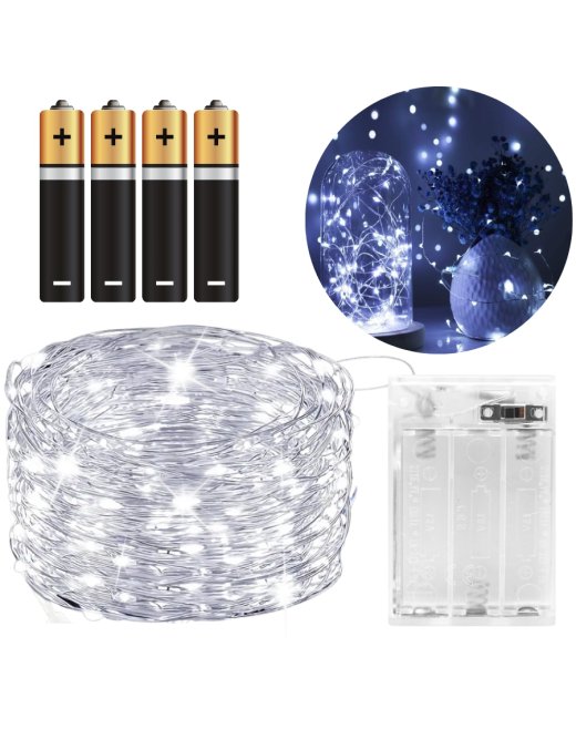 ✅⭐ Zasilane są 3 bateriami AA. Lampki posiadają włącznik zasilania. Dzięki drucikowi możesz stworzyć różnorodne aranżacje.