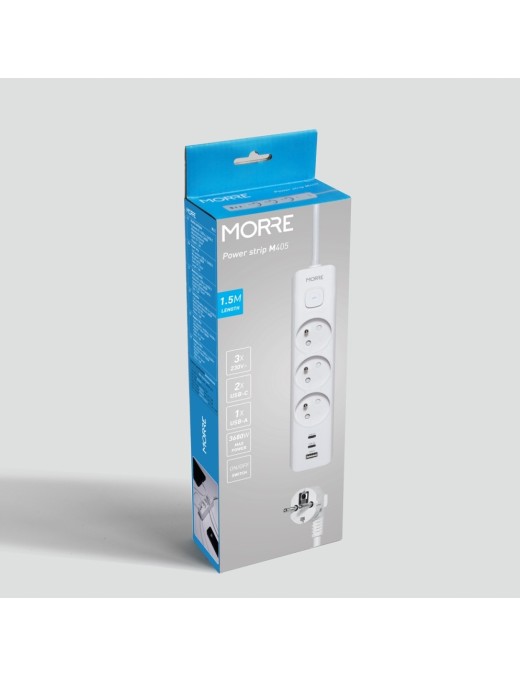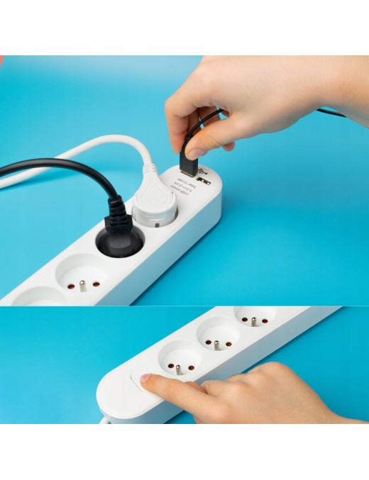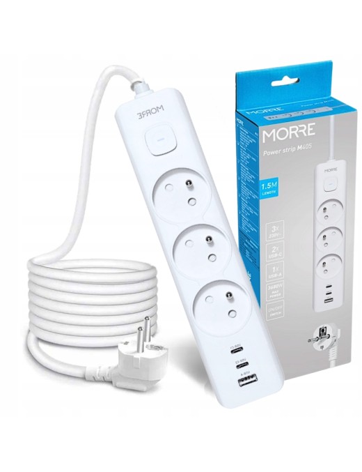 Przedłużacz listwa 3xAC 2xUSB-C 1xUSB-A 1.5m ON/OFF 3680W do biura domu