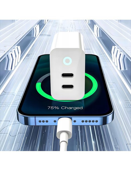 Dzięki dwóm portom USB-C Typu C wejściowym, ta ładowarka umożliwia ładowanie dwóch urządzeń jednocześnie, co jest niezwykle praktyczne podczas podróży, w pracy czy w sytuacjach awaryjnych.