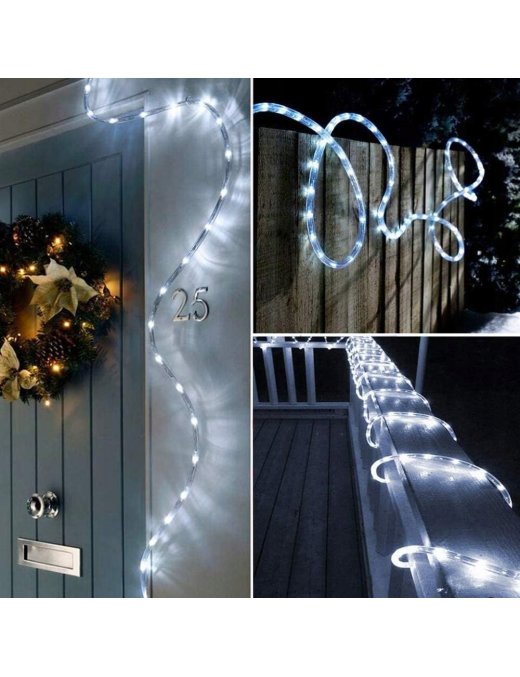 WĄŻ ŚWIETLNY ZEWNĘTRZNY 240 LED LAMPKI CHOINKOWE IP44 10m ZIMNY BIAŁY
