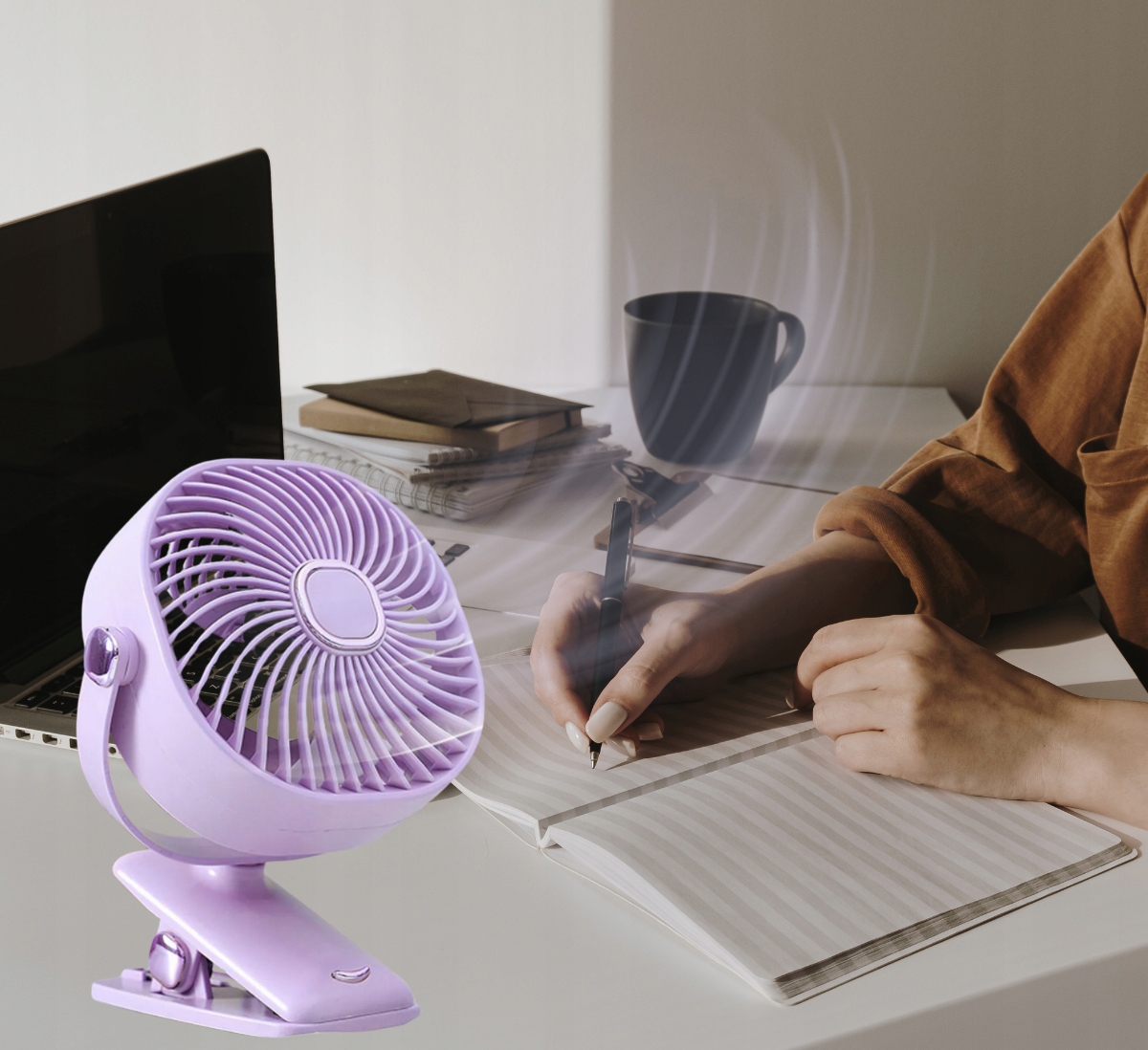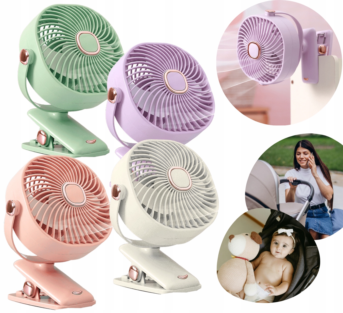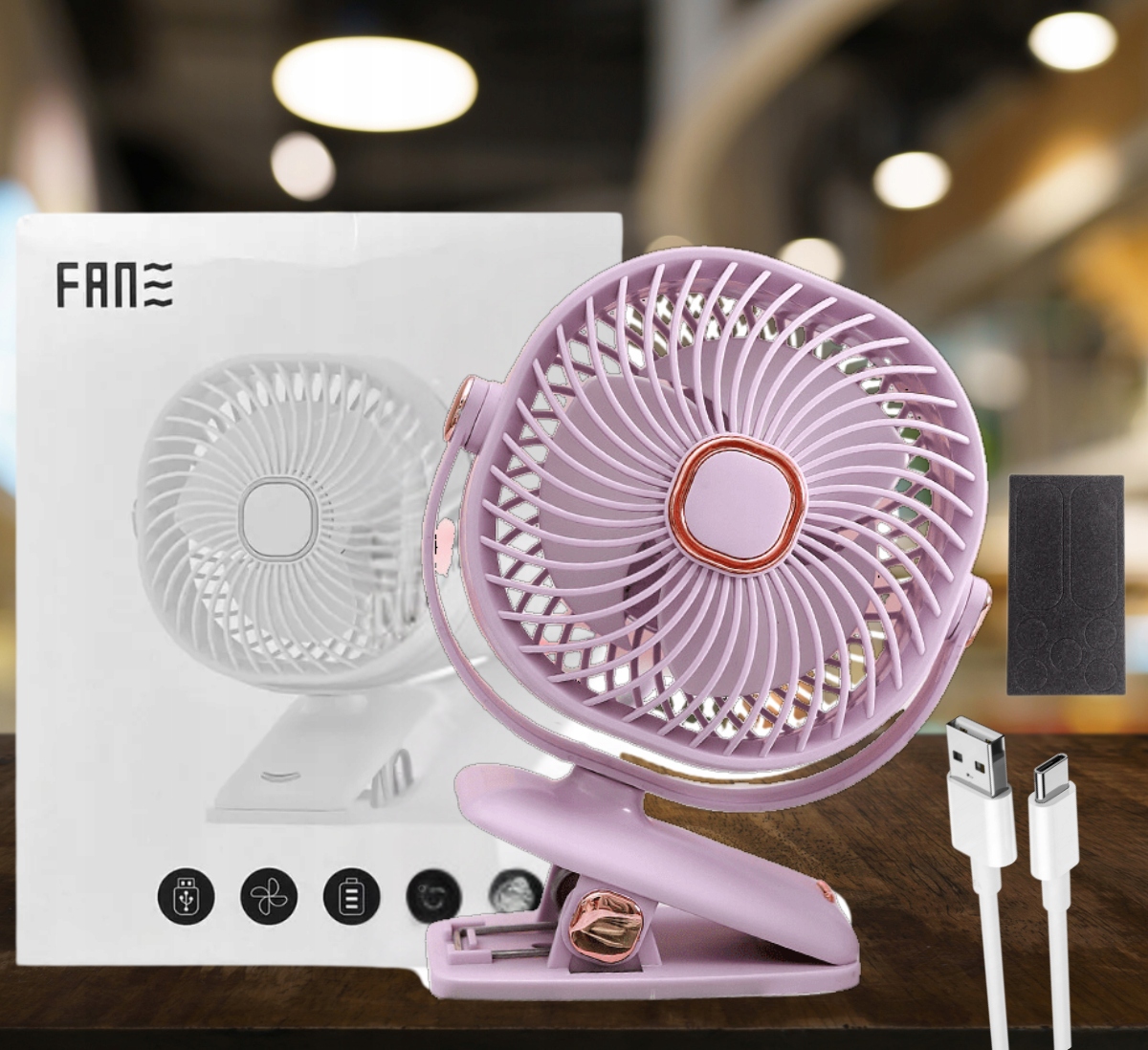 Wentylator biurkowy Mały wiatrak bezprzewodowy stojący + klips 1200mAh USB