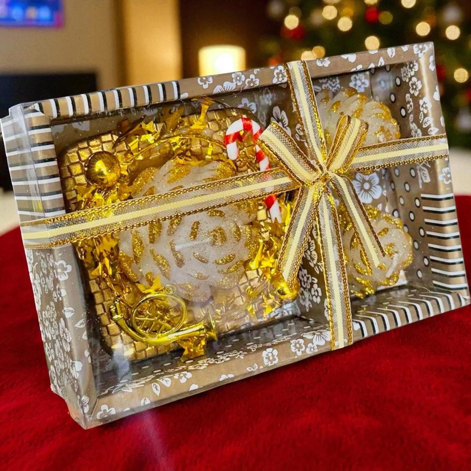Zestaw trzech świec bożonarodzeniowych łączy elegancję, funkcjonalność i świąteczną magię. Dzięki ręcznemu wykonaniu, starannie dopracowanym detalom oraz przyjemnemu zapachowi produkt wprowadza do każdego wnętrza wyjątkowy, przytulny klimat świąt, sprawiając, że dekoracje stają się nie tylko piękne, ale także praktyczne.