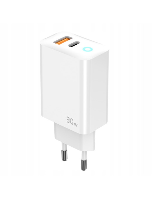 Ta kompaktowa ładowarka pozwoli Ci na naładowanie różnych urządzeń elektronicznych. Jej maksymalna moc to 30 W, dzięki czemu przesyłanie energii odbywa się naprawdę szybko.