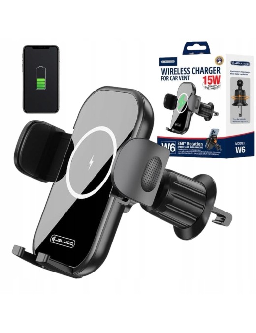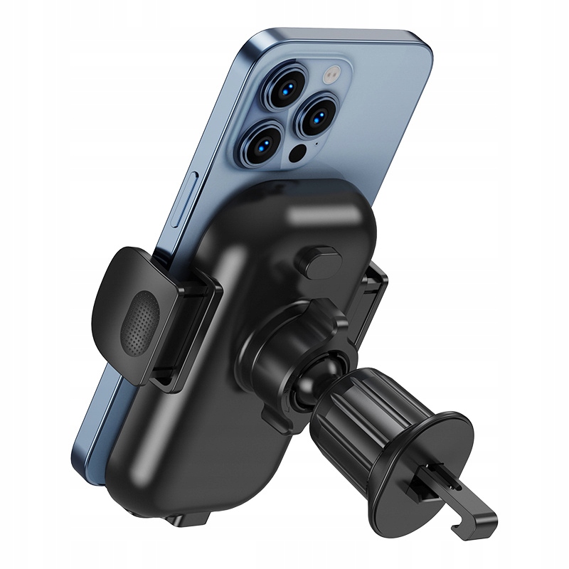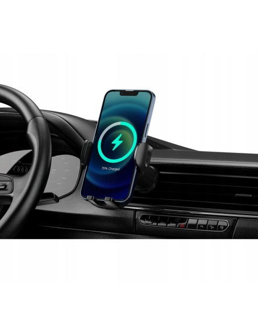 Uchwyt samochodowy z wbudowanym ładowaniem indukcyjnym o max mocy 15W. Wystarczy podłączyć dołączony kabel do uchwytu oraz ładowarki i możemy cieszyć się bezprzewodowym ładowaniem naszego smartfona. Uchwyt dysponuje ulepszonym systemem mocowania w kratce nawiewu oraz charakteryzuje się precyzyjnym mechanizmem grawitacyjnym. Jest niezwykle trwały i bardzo prosty w obsłudze.